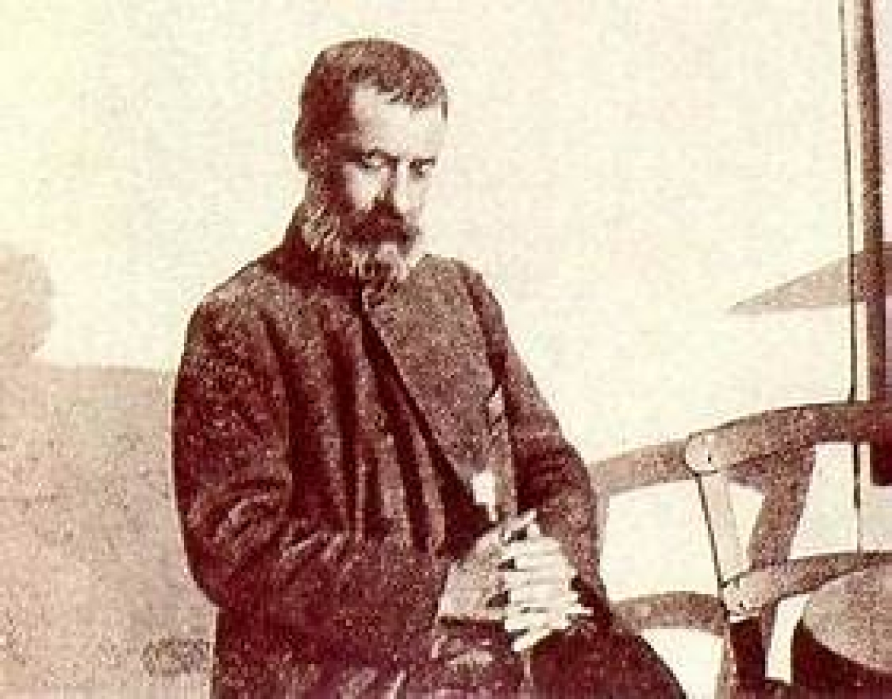 Πέρασαν ημέρες αρκετές. Ήσαν προπαραμονές των Xριστουγέννων. Ήταν ώρα δειλινού και ενώ καθόμουνα σ’ ένα από τα γραφεία της Ακροπόλεως εις την Στοάν του Πάππου, τότε. Άλλος κανείς μού φαίνεται από την σύνταξη δεν ήτανε εκεί. Ήταν η ώρα της ρετσίνας, του κόρτε και του ρεπορτάζ. Κι εγώ τότε ούτε ρετσίνα έπινα, ούτε με τα ρεπορτάζ απησχολούμην. Κάτι έγραφα όμως εκείνη την στιγμή, και ήμουνα απορροφημένος με την εργασία, όταν μέσα στο θαμπόφως της εσπέρας, που γινότανε βαθύτερον εις το γραφείον, άνοιξε η πόρτα και μπήκε ένας άνθρωπος, μάλλον υψηλός, κακοντυμένος, με υποκάμισο ζουλισμένο στο λαιμό, χωρίς γραβάτα, με ρούχα οπωσδήποτε απεριποίητα και μακρύ επανωφόρι τριμμένο. Παρά την φτωχική εμφάνισιν, τα γένεια του και τα απεριποίητα μαλλιά του, το μελαψό του πρόσωπο ήτανε κόκκινο στα μάγουλα, κι από τα μάτια του έσταζε μια γλύκα. Εμπήκε συνεσταλμένος και δειλός.